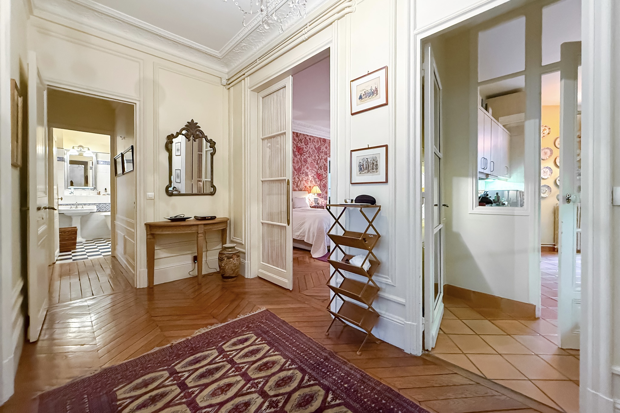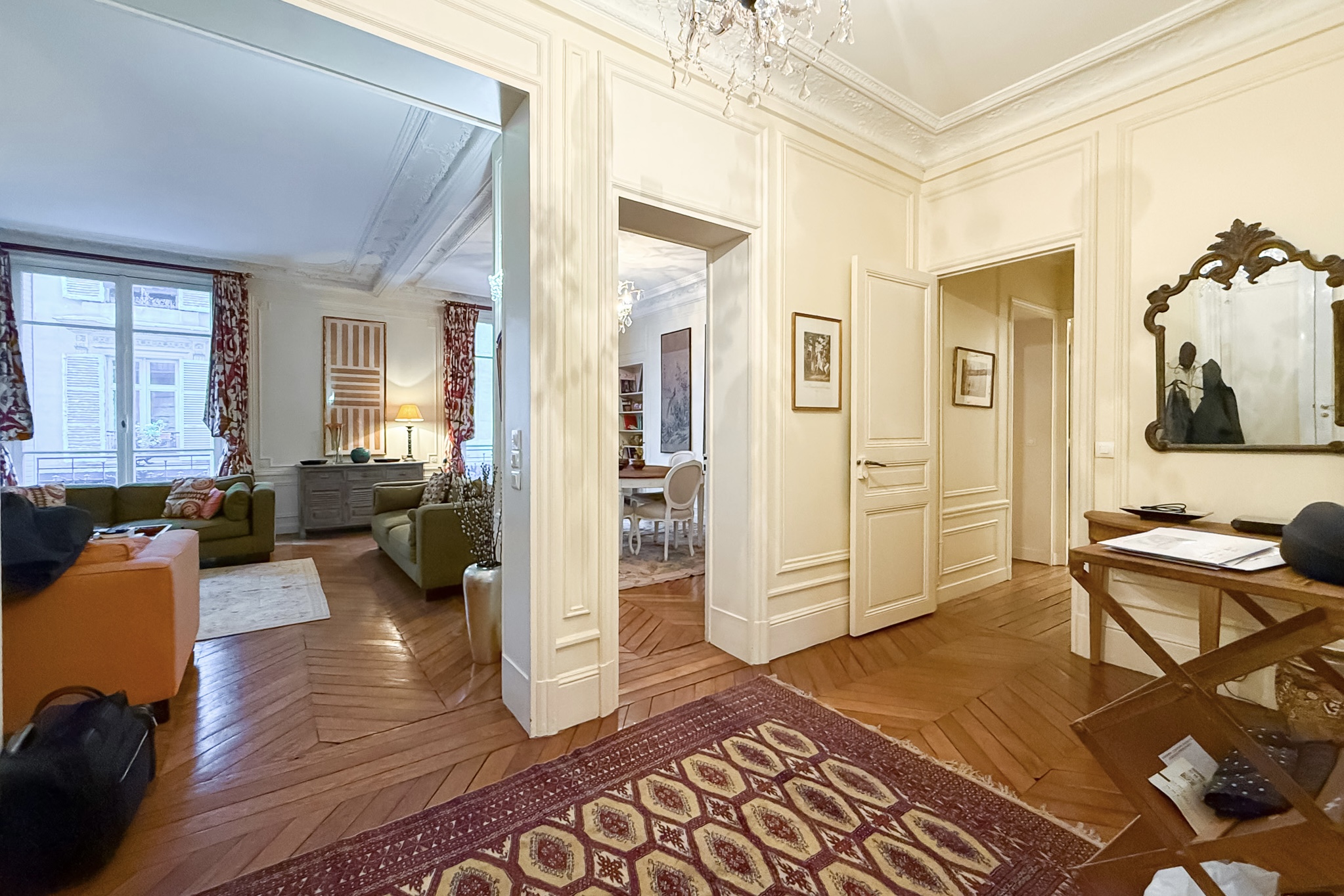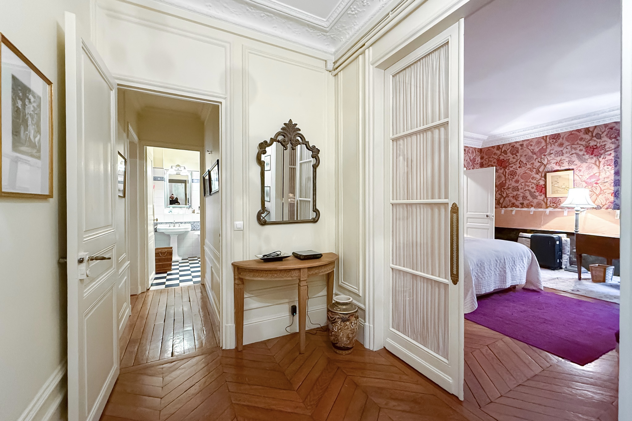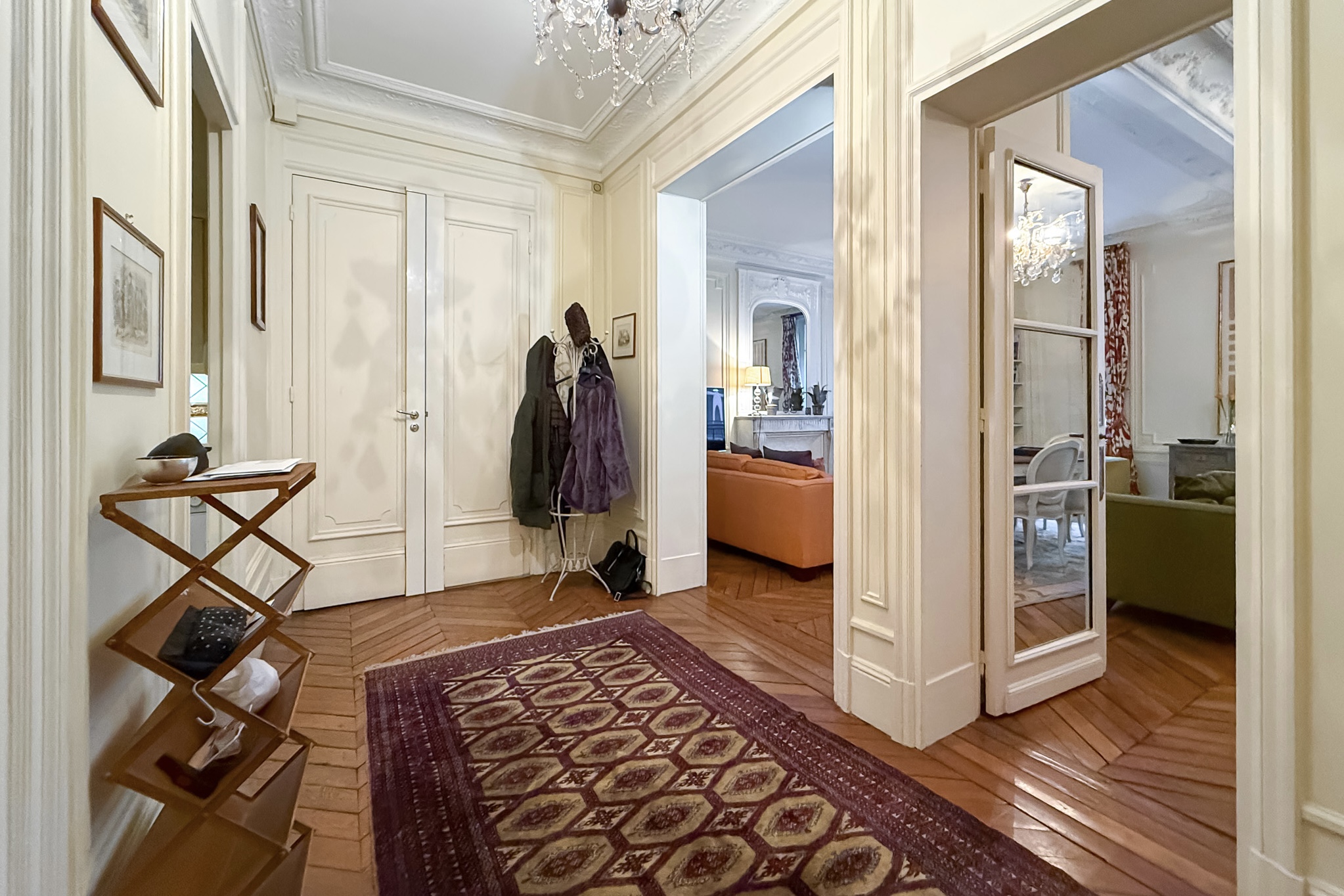 Situé dans la chic et élégante Rue de Bellechasse, entre Musée d’Orsay et Musée Rodin, appartement de 120,50m2 carrez en 1e étage offrant des prestations de standing et de généreux volumes. Une entrée élégante distribue parfaitement les espaces sans perte, avec un vaste double séjour sur rue, une chambre de maitre de 22,3 m2, auxquels s’ajoutent deux dressings circulants, donnant sur cour intérieure, une deuxième chambre de 18,5 m², une grande salle de bain de 13 m2 avec baignoire, un wc séparé et une douche séparée, ainsi qu’une grande cuisine équipée. Parquet Point de Hongrie, cheminées et moulures typiquement haussmaniens subliment la belle hauteur sous plafond et offrent un cachet intemporel. Un magnifique ascenseur sublime une montée d’escaliers a la rambarde style Louis XVI et ses vitraux. Cuisine et chambre principale donnent sur une cour arborée et calme. Chauffage central et production d’eau chaude individuelle par chaudière gaz. Une cave complete ce bien Aucun travaux à prévoir.