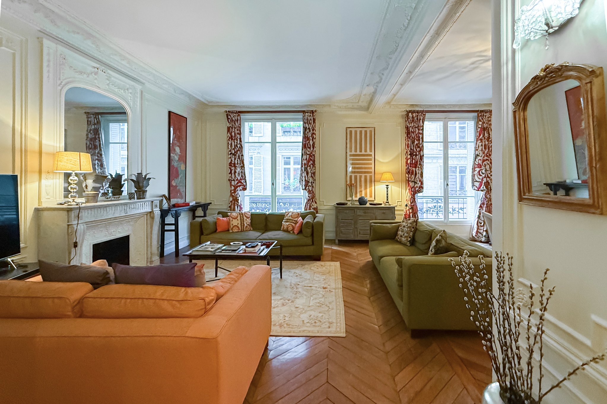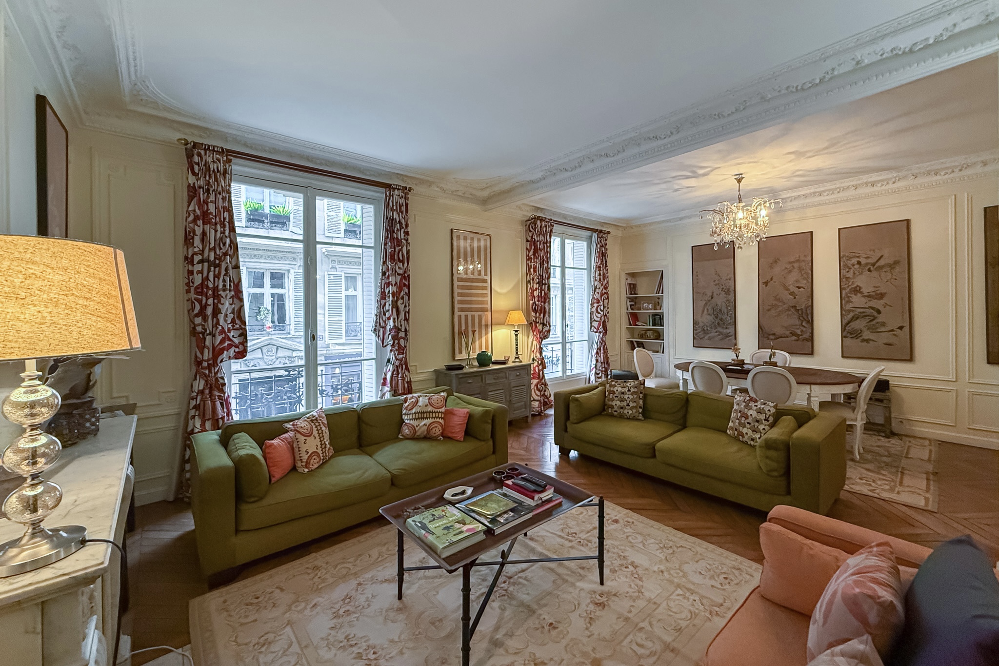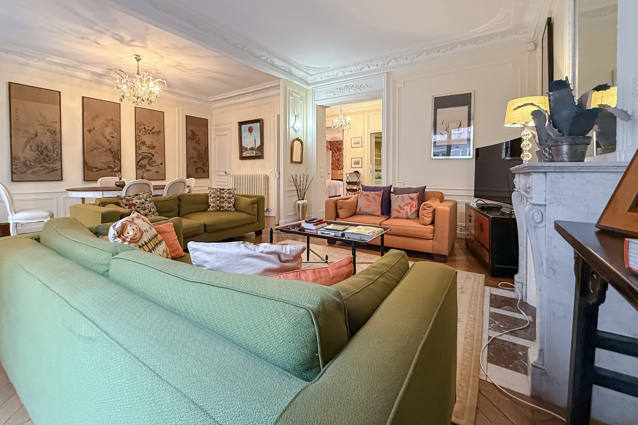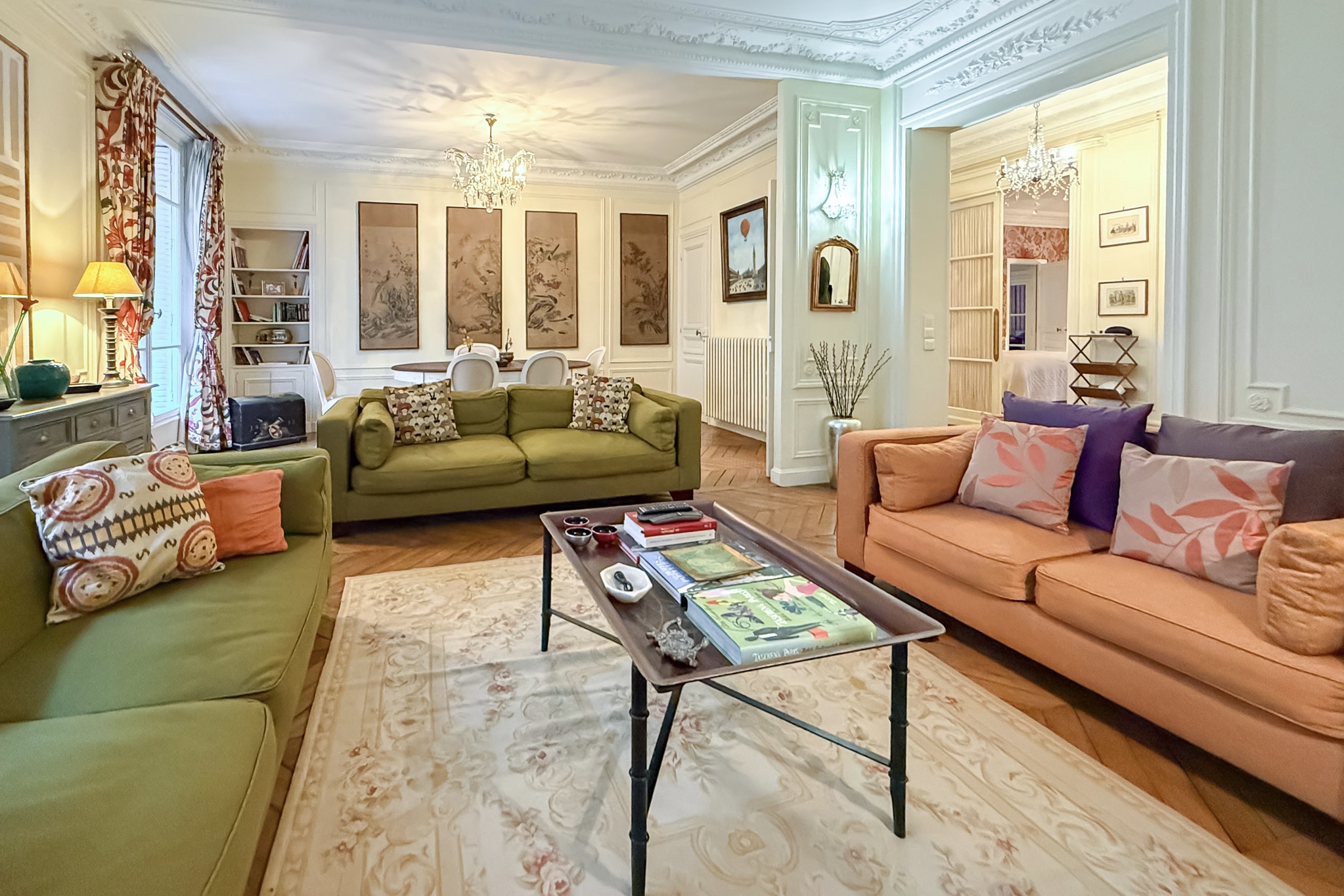 Situé dans la chic et élégante Rue de Bellechasse, entre Musée d’Orsay et Musée Rodin, appartement de 120,50m2 carrez en 1e étage offrant des prestations de standing et de généreux volumes. Une entrée élégante distribue parfaitement les espaces sans perte, avec un vaste double séjour sur rue, une chambre de maitre de 22,3 m2, auxquels s’ajoutent deux dressings circulants, donnant sur cour intérieure, une deuxième chambre de 18,5 m², une grande salle de bain de 13 m2 avec baignoire, un wc séparé et une douche séparée, ainsi qu’une grande cuisine équipée. Parquet Point de Hongrie, cheminées et moulures typiquement haussmaniens subliment la belle hauteur sous plafond et offrent un cachet intemporel. Un magnifique ascenseur sublime une montée d’escaliers a la rambarde style Louis XVI et ses vitraux. Cuisine et chambre principale donnent sur une cour arborée et calme. Chauffage central et production d’eau chaude individuelle par chaudière gaz. Une cave complete ce bien Aucun travaux à prévoir.