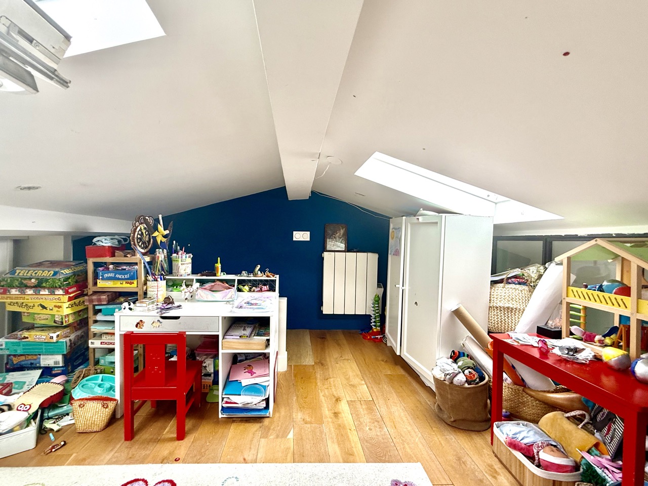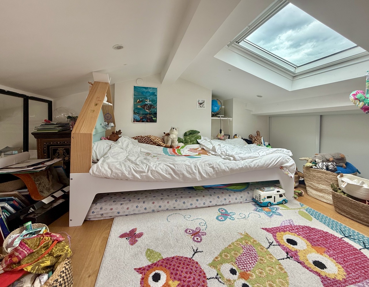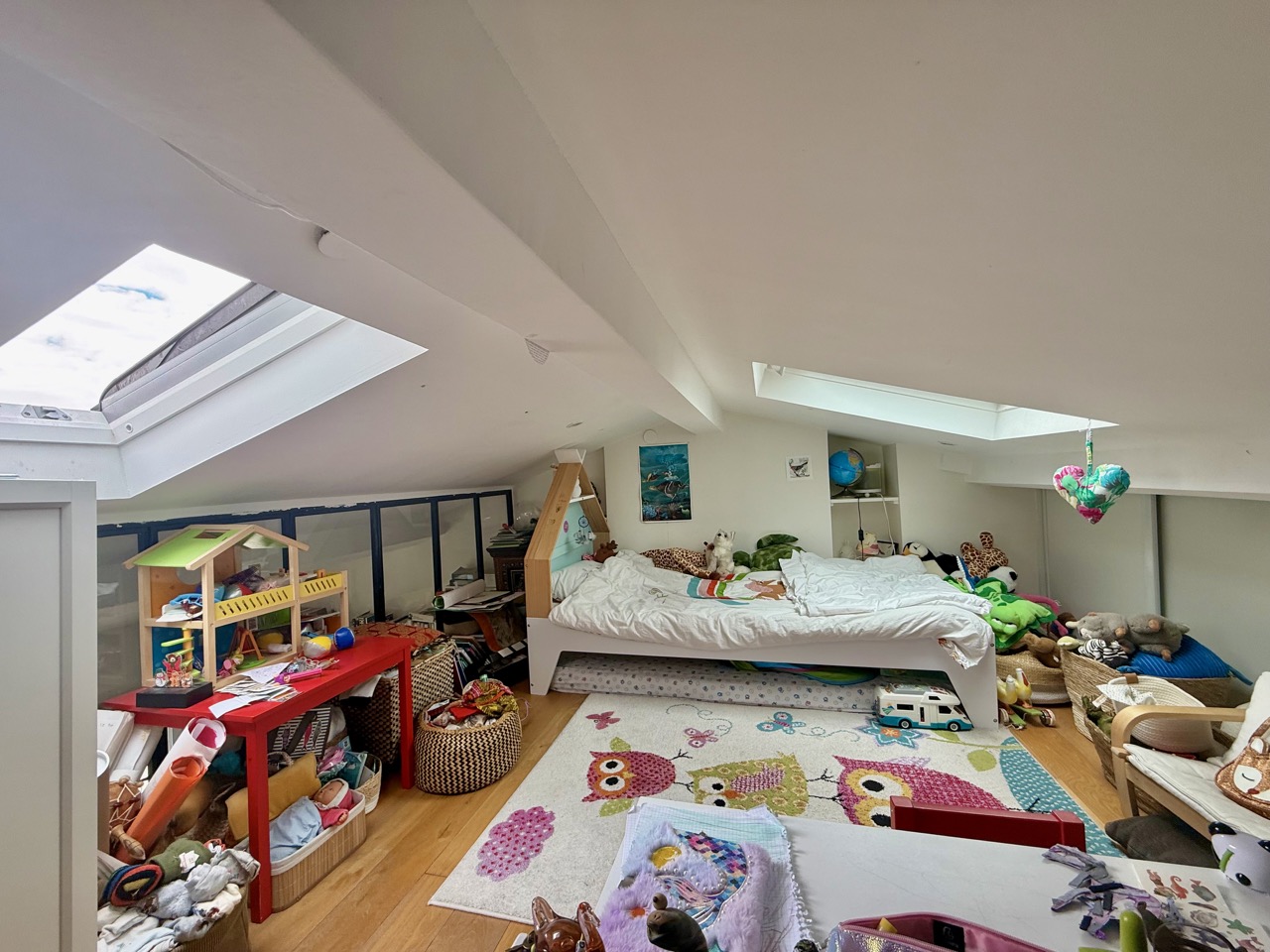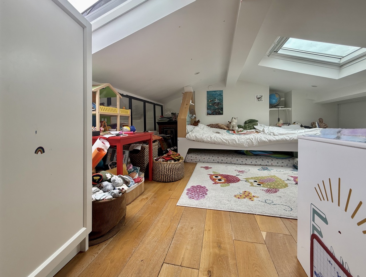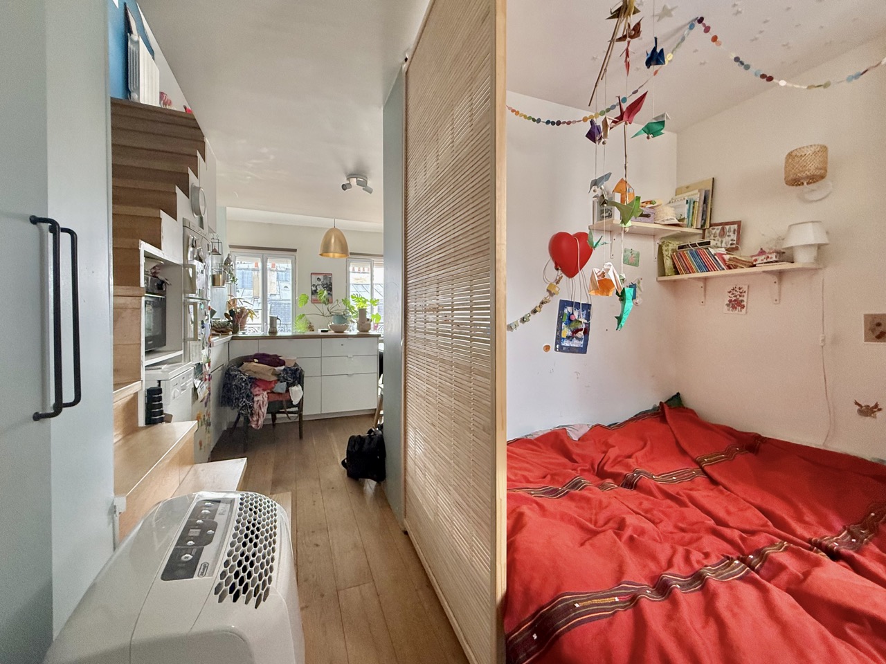 Au cœur de la vibrante rue de Belleville, à deux pas du Parc de Belleville, se dévoile ce duplex atypique de 51,69m2 (dont 36,82m2 Carrez) au 5e étage, offrant une expérience entre esprit loft et maison sous les toits. Le premier niveau séduit par son séjour baigné de lumière de par son exposition plein sud et une hauteur sous plafond de près de 3,80 m, créant une sensation d’espace et de respiration. La cuisine ouverte avec îlot s’intègre parfaitement à cet espace de vie. Il se poursuit par une chambre ouverte, une salle de bains avec baignoire, un WC séparé, ainsi que de nombreux rangements et bibliothèques sur mesure complètant ce niveau avec une fonctionnalité optimale. À l’étage, une vaste pièce sous toit de quasi 15m2, accessible en mezzanine, offre un volume supplémentaire spectaculaire actuellement en chambre d’enfants avec espace de jeux. Les deux Velux dévoilent des vues profonde sur les toits de Paris, et un espace vitré crée un lien visuel élégant avec le séjour en contrebas. Ce bien unique se distingue par ses perspectives, ses volumes et son caractère résolument atypique, au coeur d’un secteur particulièrement recherché. Idéalement adapté à une famille avec jeunes enfants ou à des amateurs d’espaces singuliers. Un cagibi complète le bien. Copropriété de 27 lots d’habitation. Montant charges annuelles 1160€.